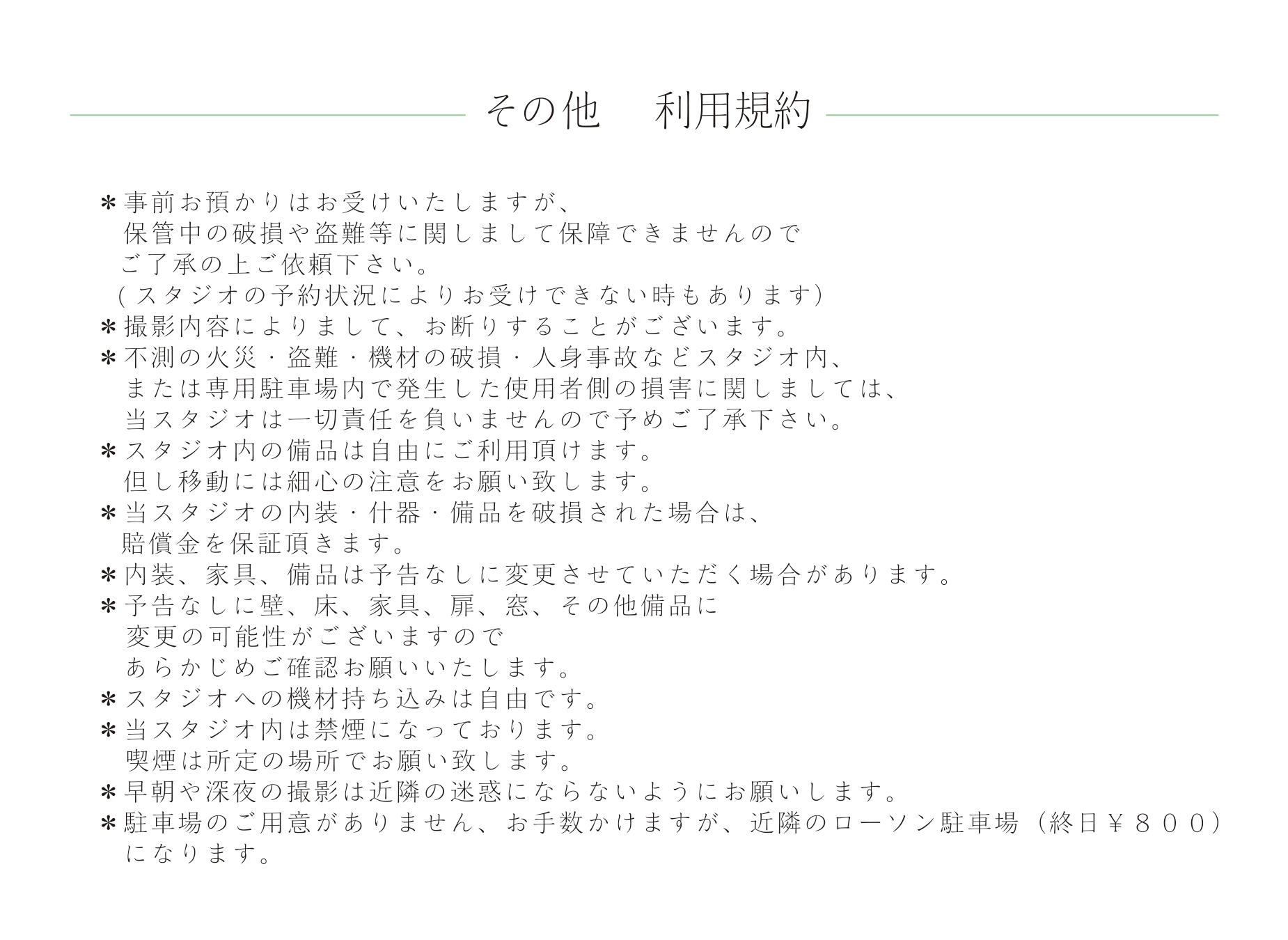 最低ご利用時間は4時間とさせて頂きます。(スタジオ使用基本時間9:00~19:00。